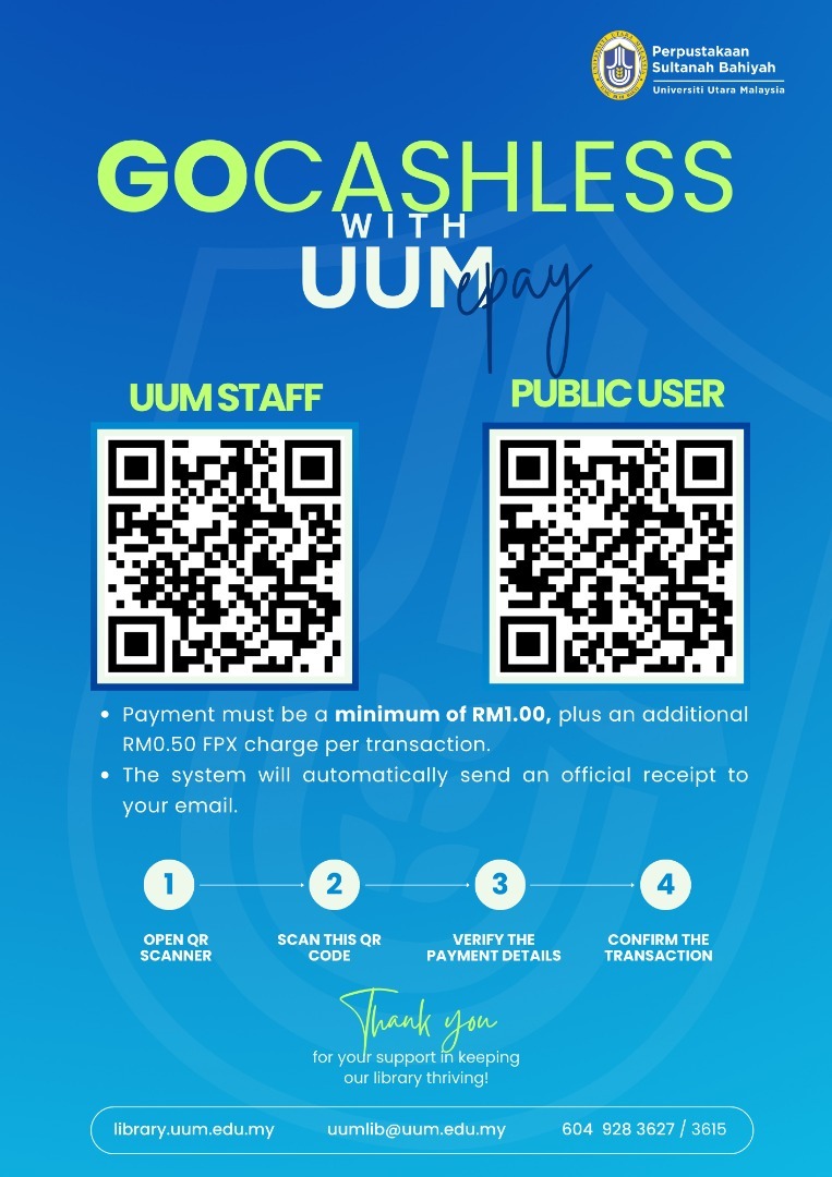 If overdue, borrowed books must be return for the fines to be checked into our system. Payment can be made after 24 hours the book returned via QR Code / link provided.