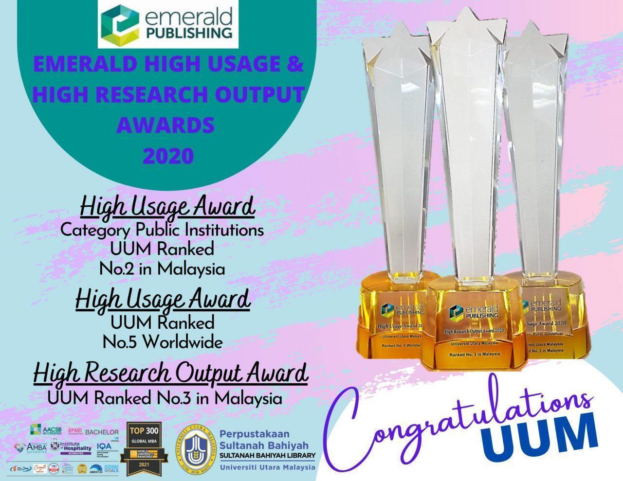 TAHNIAH UUM ATAS PENGIKTIRAFAN DALAM EMERALD’s HIGH USAGE DAN HIGH RESEARCH OUTPUT AWARDS 2020 3 January 2021