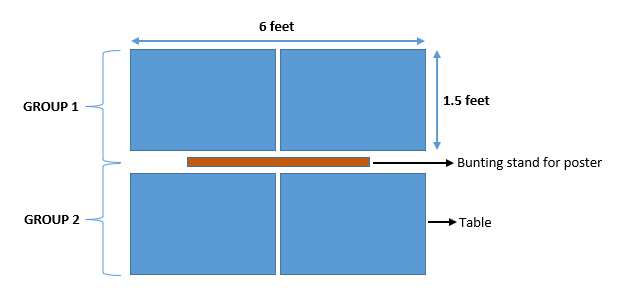 The organizer provides only 1 unit of bunting stand for the use of two groups of participants (sharing the front and back of the stand).