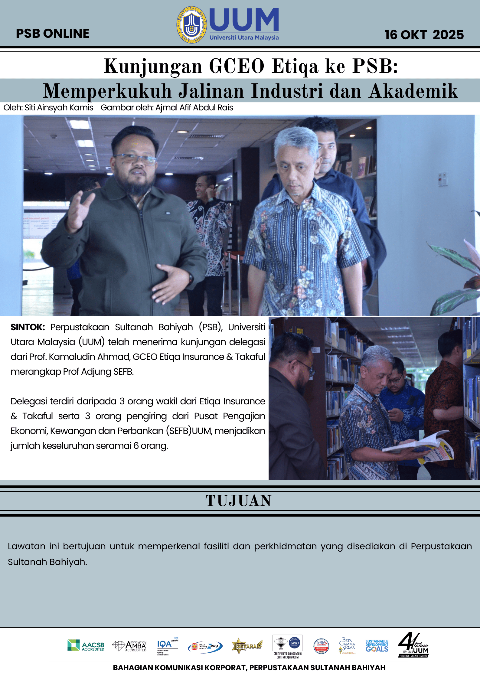 KUNJUNGAN GCEO ETIQA KE PSB:MEMPERKUKUH JALINAN INDUSTRI DAN AKADEMIK