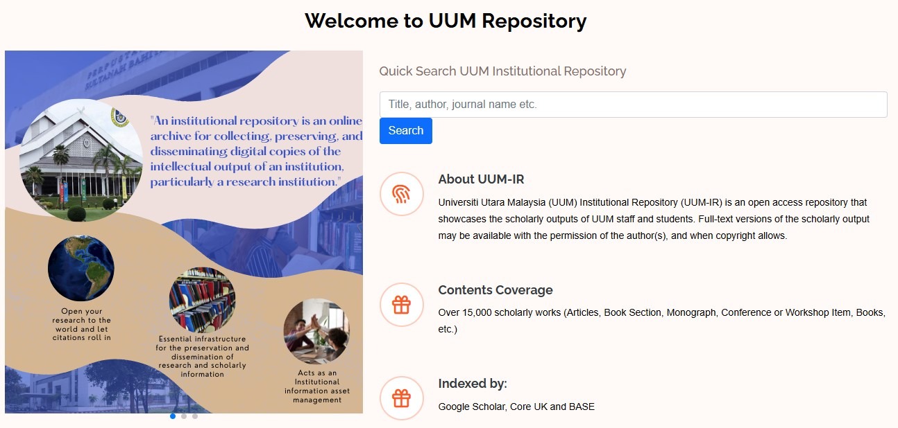 Full-text items are downloadable with author permission and serve as academic references for UUM patrons.
