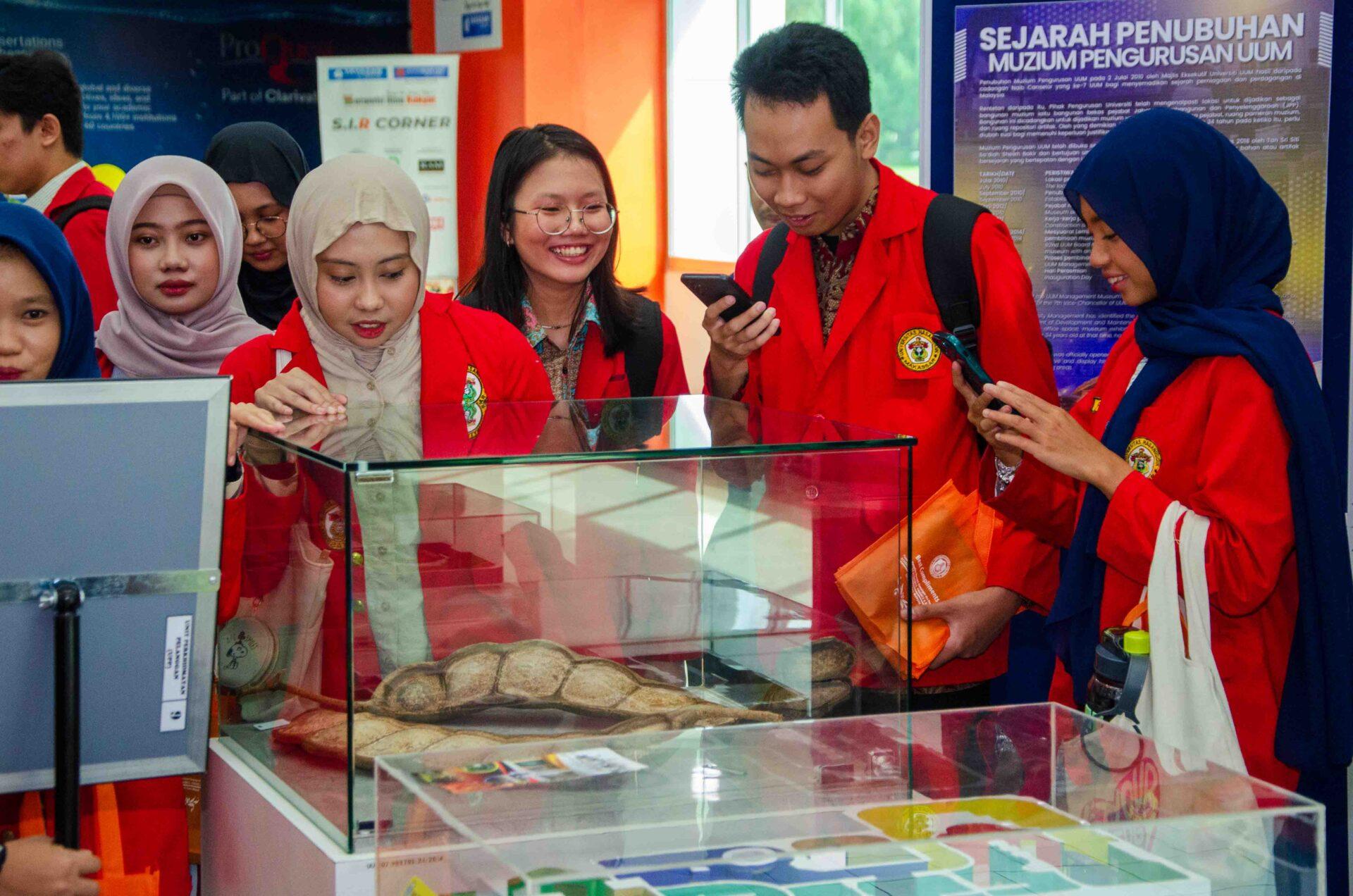 Para pelajar sangat tertarik dengan pameran ‘petai gergasi sintok’ atau Entada Spiralis (buah sintok) yang dipamerkan di ruang pameran di pintu masuk bangunan tambahan PSB. Mereka juga mengambil inisiatif untuk mencari maklumat lanjut mengenai ‘petai gergasi’ menggunakan telefon pintar masing-masing.