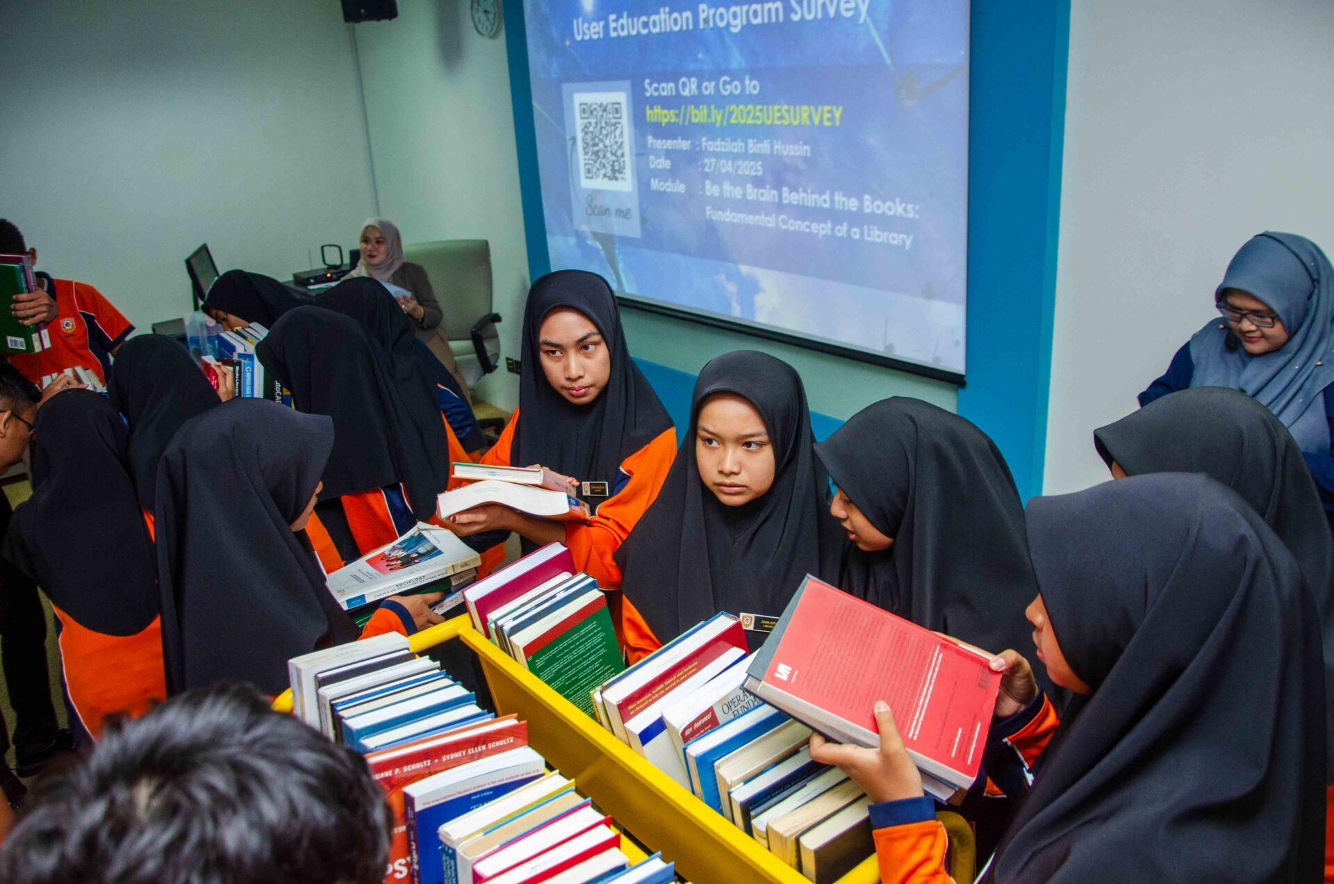 Sepanjang bengkel berlangsung, para pelajar dan guru telah didedahkan dengan pelbagai maklumat baharu yang merangkumi konsep asas perpustakaan, sistem perpustakaan digital, sistem pengurusan perpustakaan, serta aspek pengurusan dan kemudahan perpustakaan akademik. Segala input yang diterima amat bermanfaat, khususnya kepada para pelajar yang juga merupakan pengawas pusat sumber sekolah berkenaan. Selain sesi penerangan, bengkel ini turut diserikan dengan aktiviti menarik seperti menyusun buku mengikut call number. Walaupun kelihatan mudah, aktiviti ini memberikan pengalaman bermakna kepada pelajar untuk memahami dan mengaplikasikan sistem pengelasan buku yang berbeza daripada kebiasaan di pusat sumber sekolah, iaitu menggunakan Library of Congress Classification (LCC).
