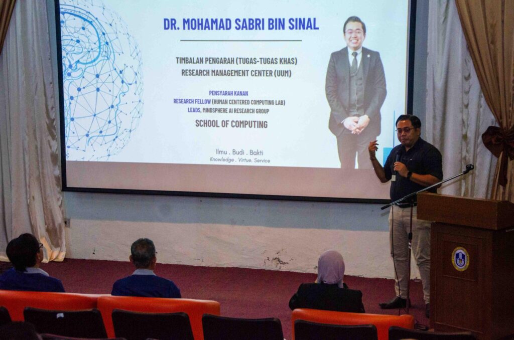Panel kedua, Dr. Mohammad Sabri Sinal@Zainal, pula mencadangkan penggunaan teknologi chatbot di perpustakaan bagi meningkatkan kecekapan perkhidmatan. Beliau turut menyarankan pemerkasaan muzium melalui pameran dinamik yang melibatkan penyertaan dari pusat pengajian di UUM. Antara inisiatif menarik yang dikongsikan ialah Scopus Minder, sistem yang bakal dilancarkan oleh RMC untuk menarik data dari pangkalan Scopus. Beliau juga menekankan kepentingan penggunaan AI secara beretika dan strategik, serta mencadangkan kolaborasi dengan pakar AI dari Pusat Pengajian Pengkomputeran (SOC), UUM. “Jom kita hi-tech, kurangkan stres, guna AI,” ujar beliau dengan penuh semangat.