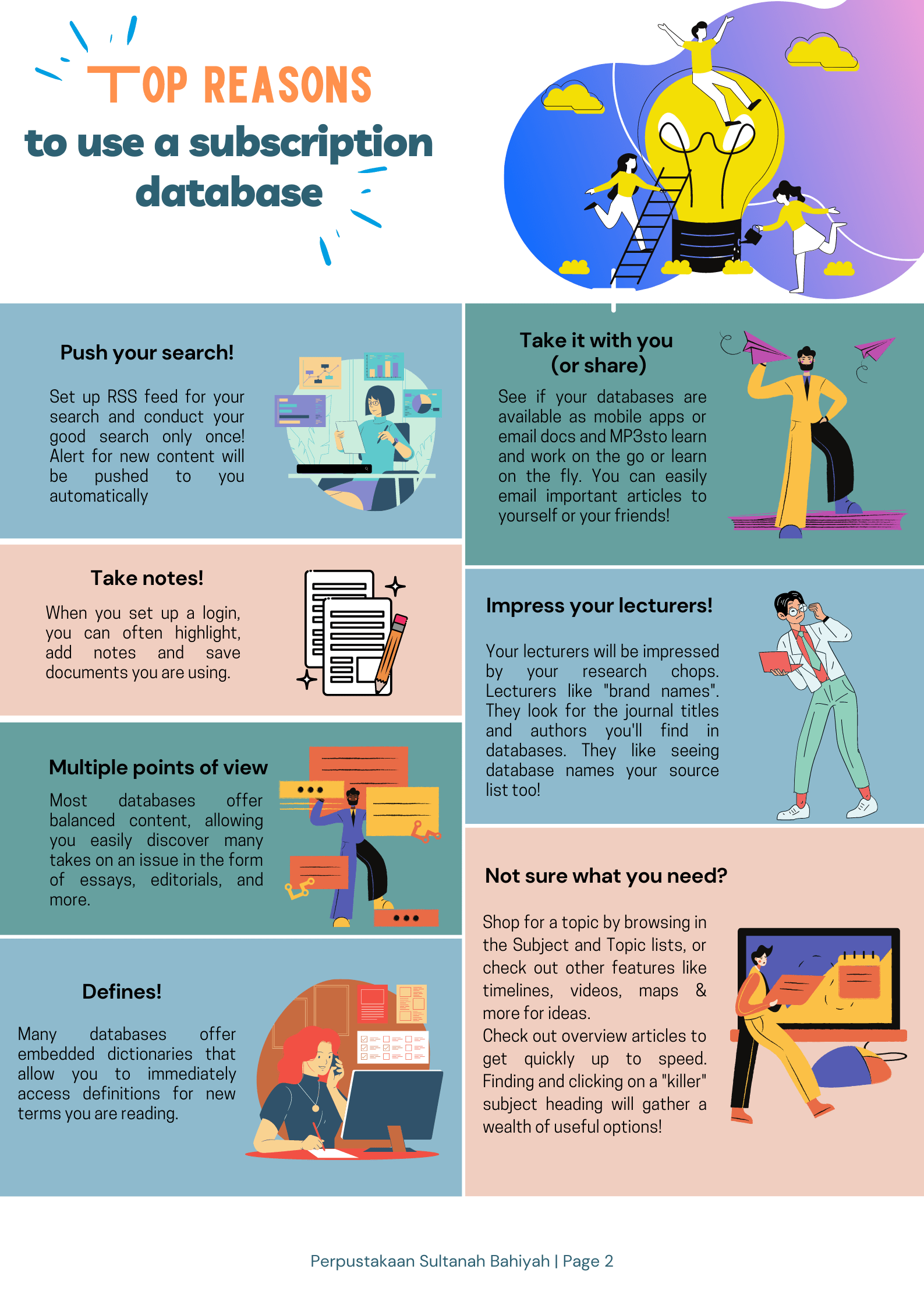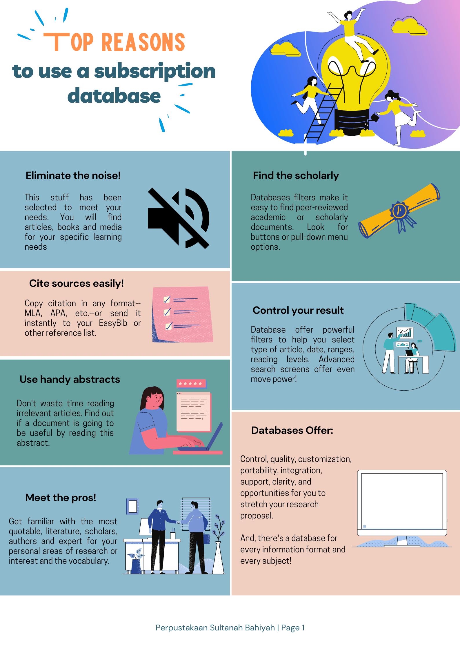 A database is a collection of online journal articles. UUM Library subscribes to a number of databases across a variety of subject areas. Through the databases, you can access articles, eBooks, proceedings and other research material on your topic.