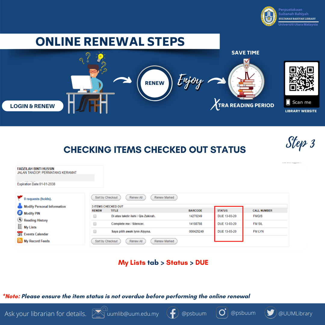 Library is now offering Ready to Pickup Book Service to all UUM Students and Staff during MCO due to COVID-19 pandemic. This is a free service.