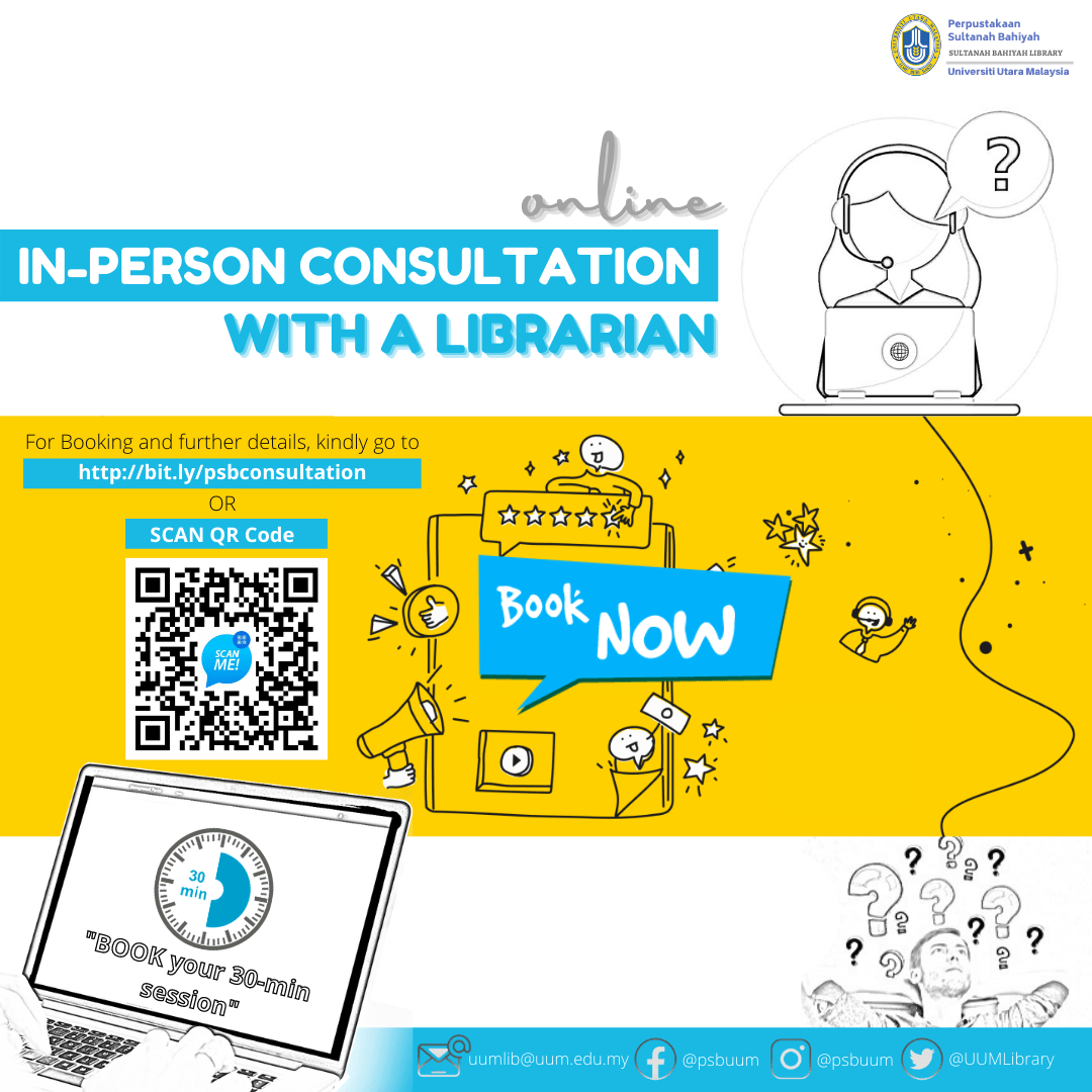 This service provides an opportunity to meet with a librarian for in-depth and highly-personalized information assistance. Consultations will be conducted in-person, through Online Meeting Platform (Cisco Webex).
