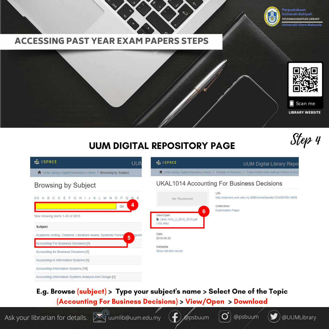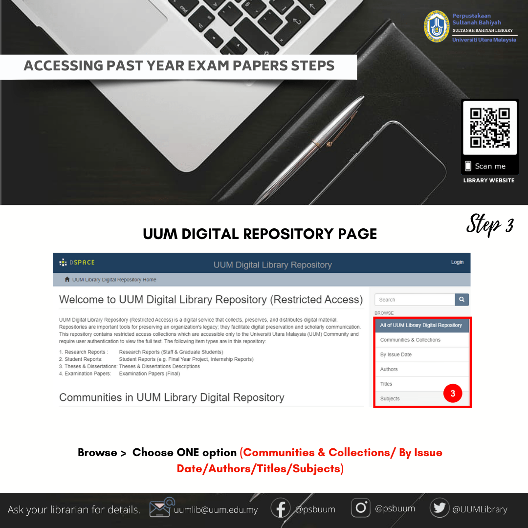 Past Year Exam Papers collection comprises digitized past year exam papers from various subjects taught at UUM since 2008.
