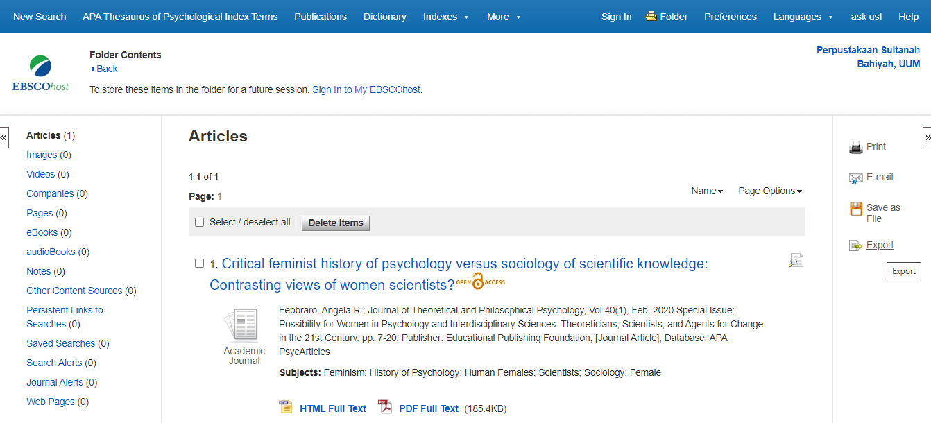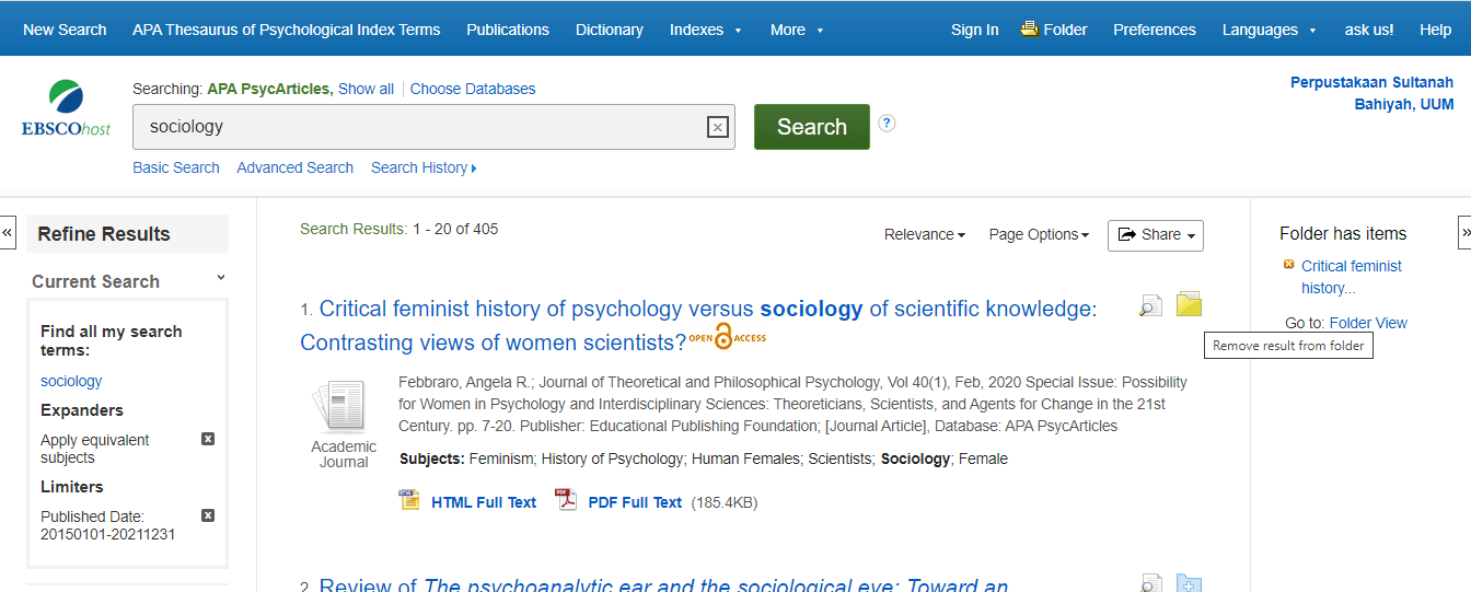 Once you complete a search in EBSCO, click the folders of the references that you want: