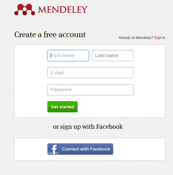 Step 1: Sign up for a Mendeley Account