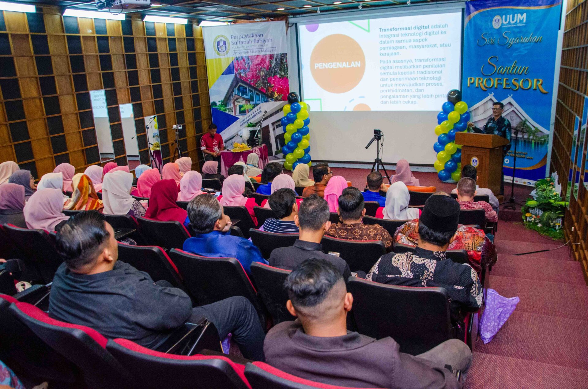 YBrs. Prof. Dr. Azham Bin Hussain, pensyarah Pusat Pengajian Pengkomputeran UUM menyampaikan syarahan yang bertajuk “Transformasi Digital Di Malaysia: Dari Teknologi Ke Masyarakat”. Syarahan ini bertepatan dengan kepakaran beliau dalam beberapa bidang kejuruteraan perisian, interaksi manusia komputer dan perkomputeran mudah alih.