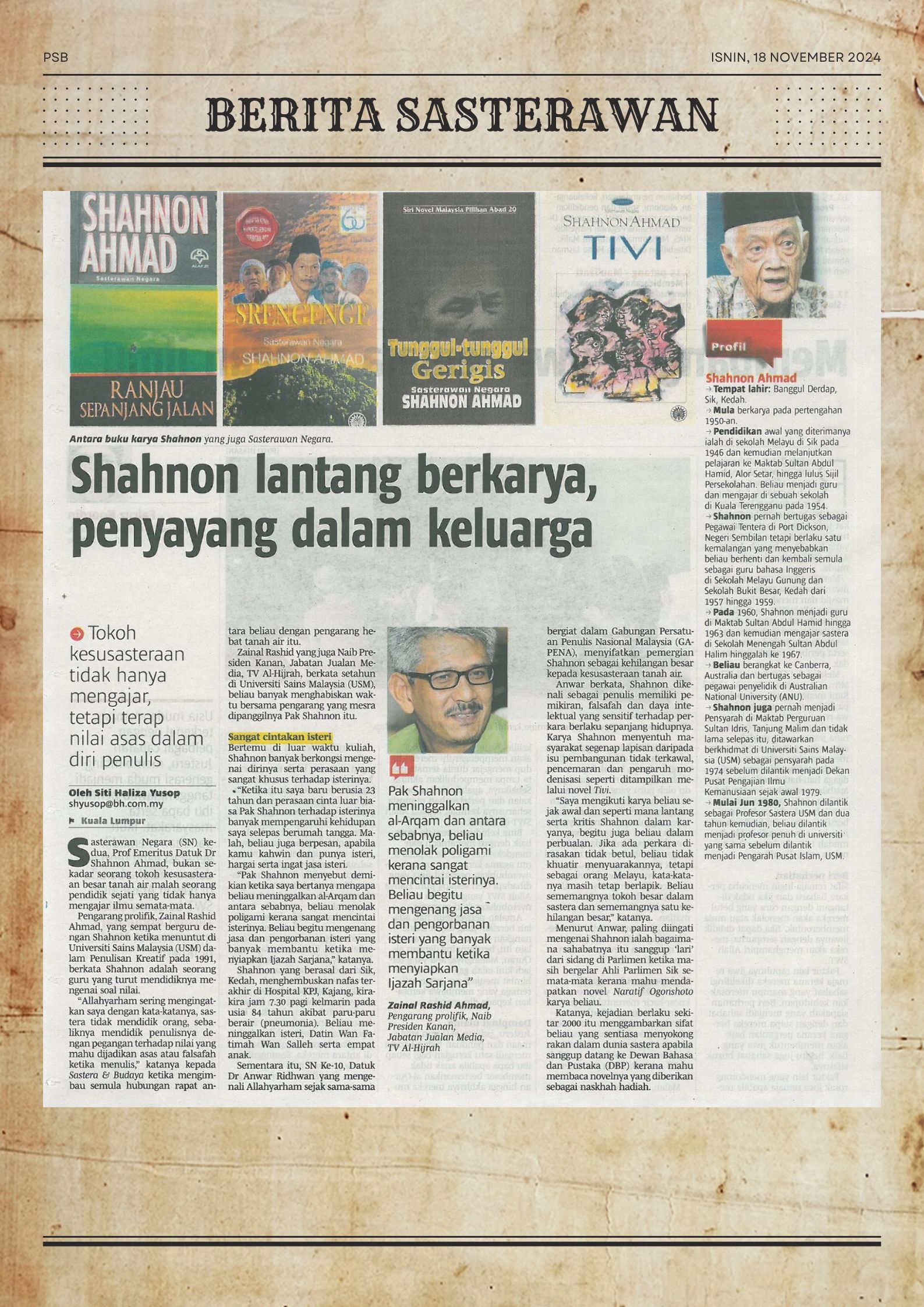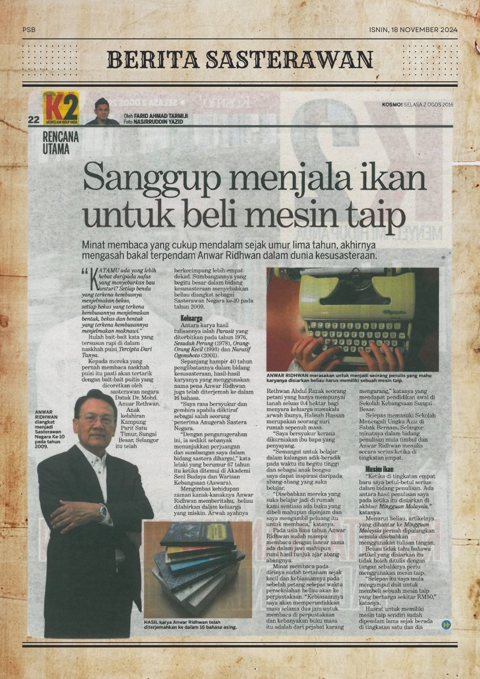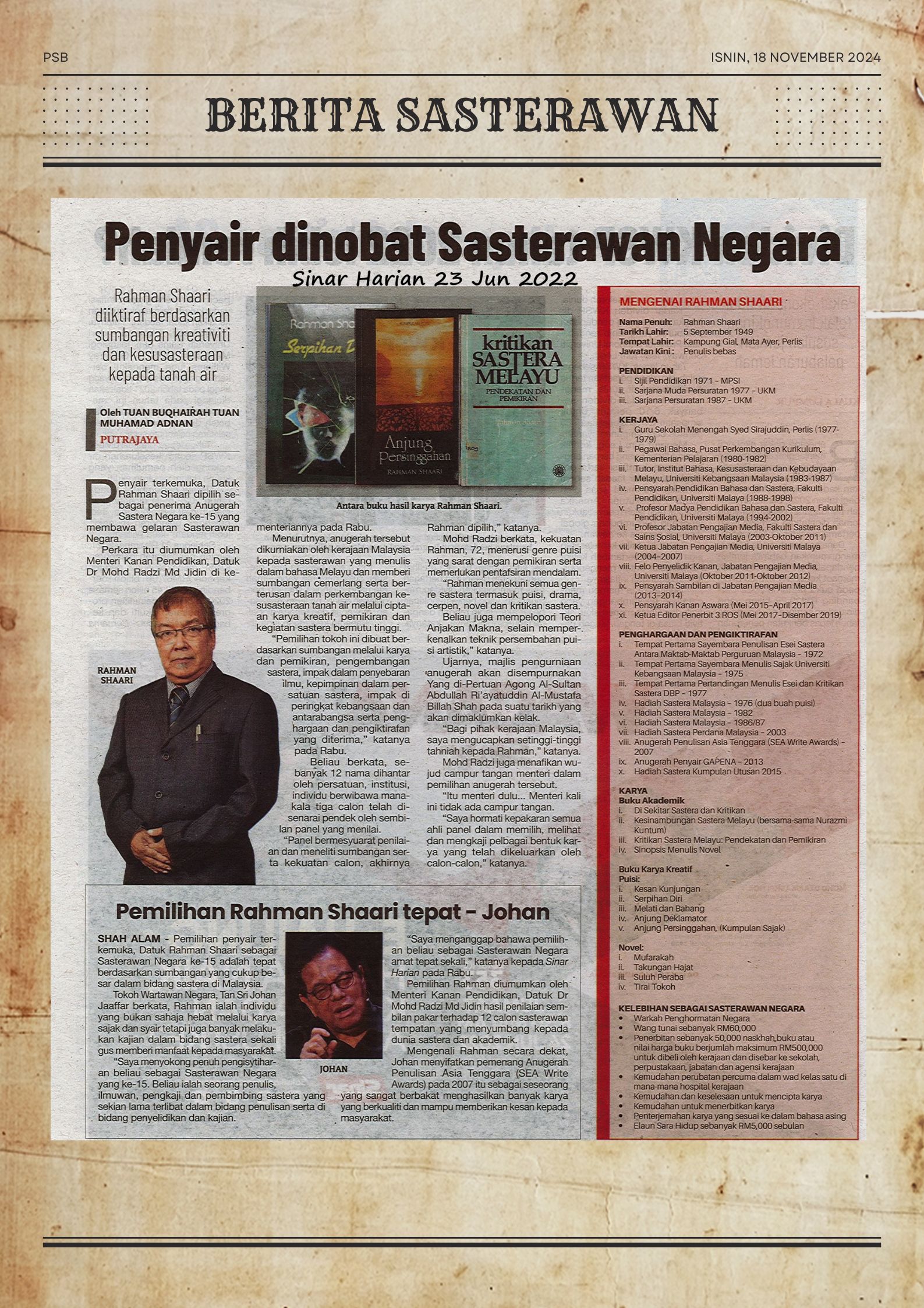 • On 30 May 2023, Prime Minister Datuk Seri Anwar Ibrahim expressed concern about the lack of student interest in literature, language, and culture, particularly works by local figures.