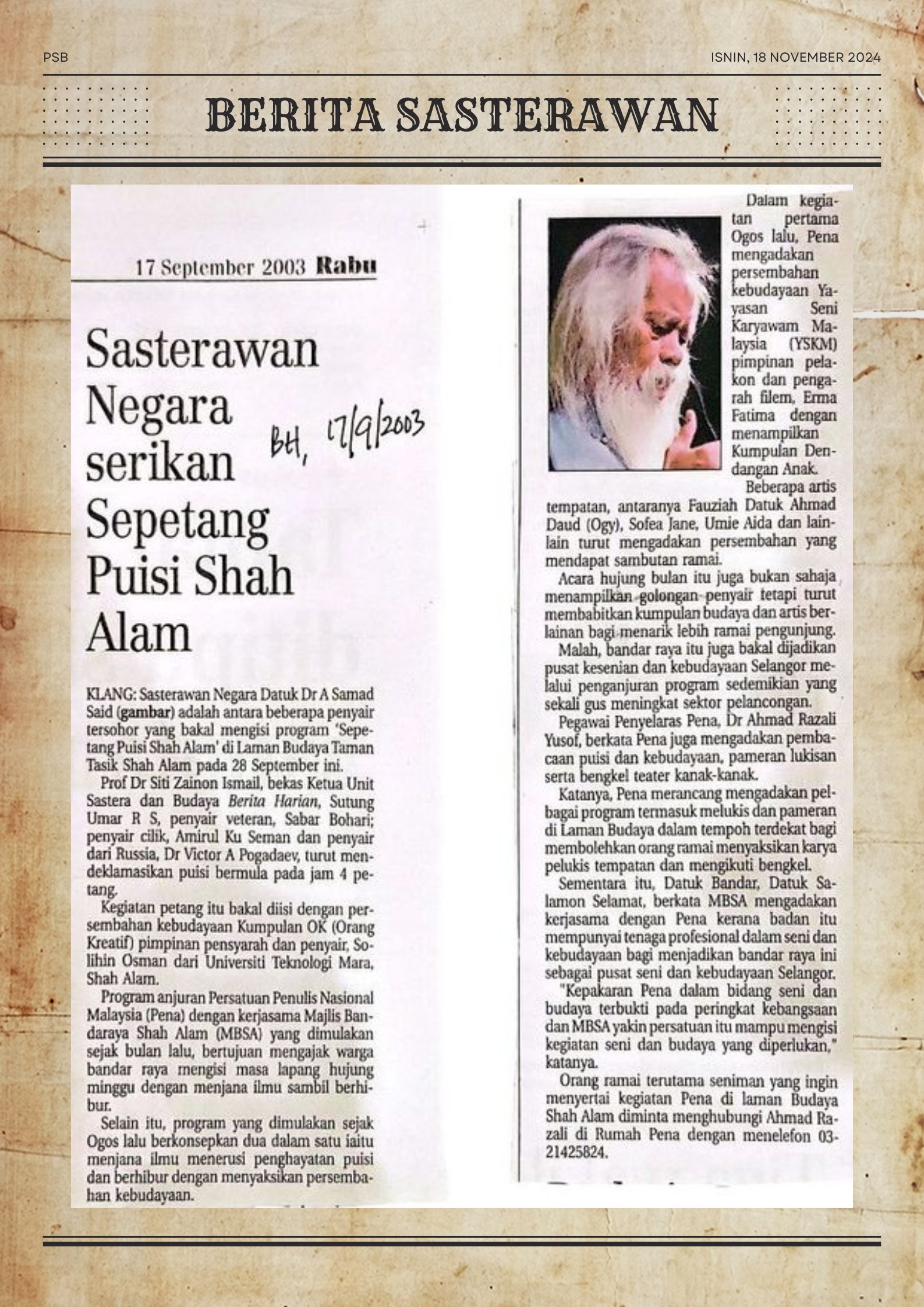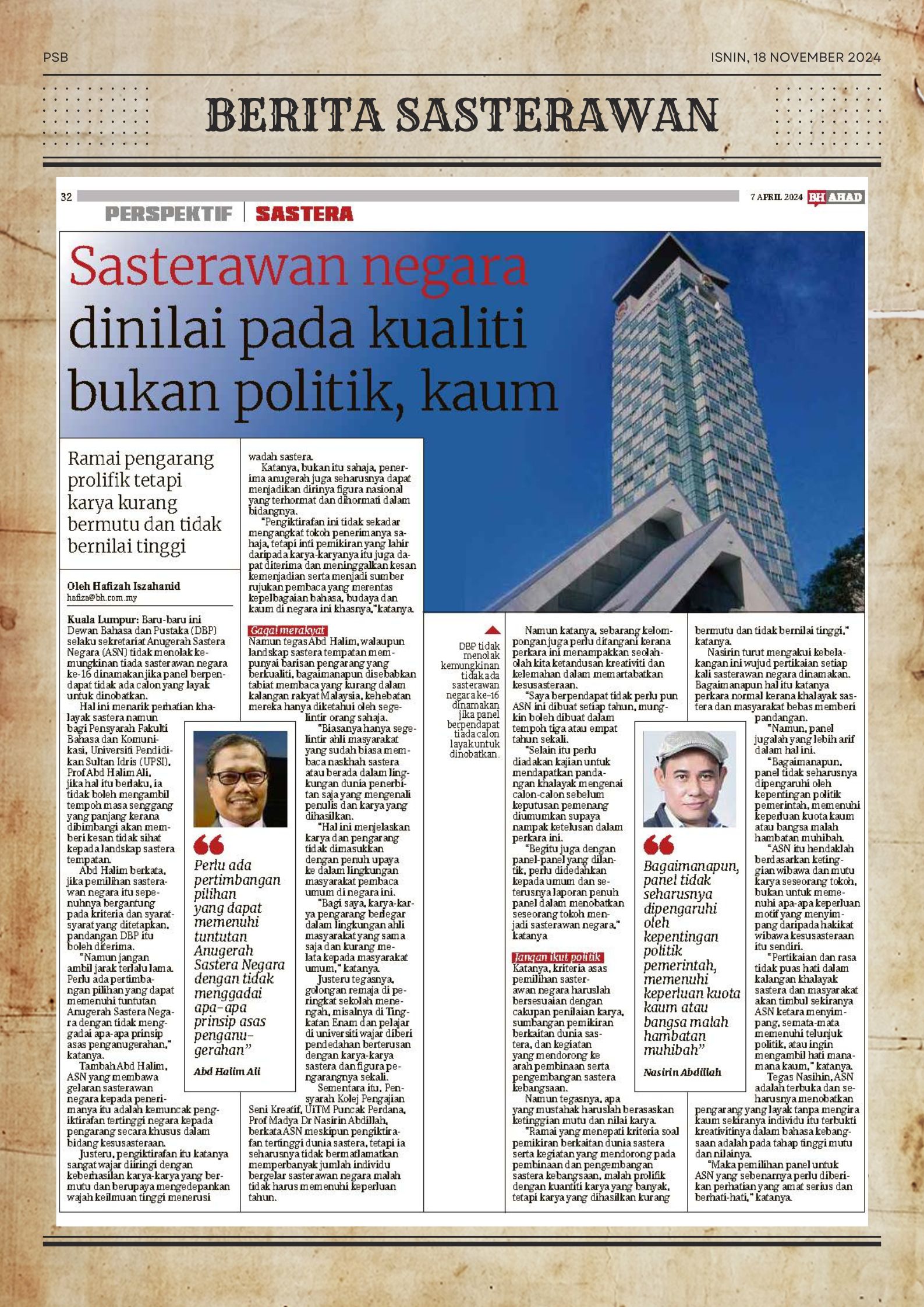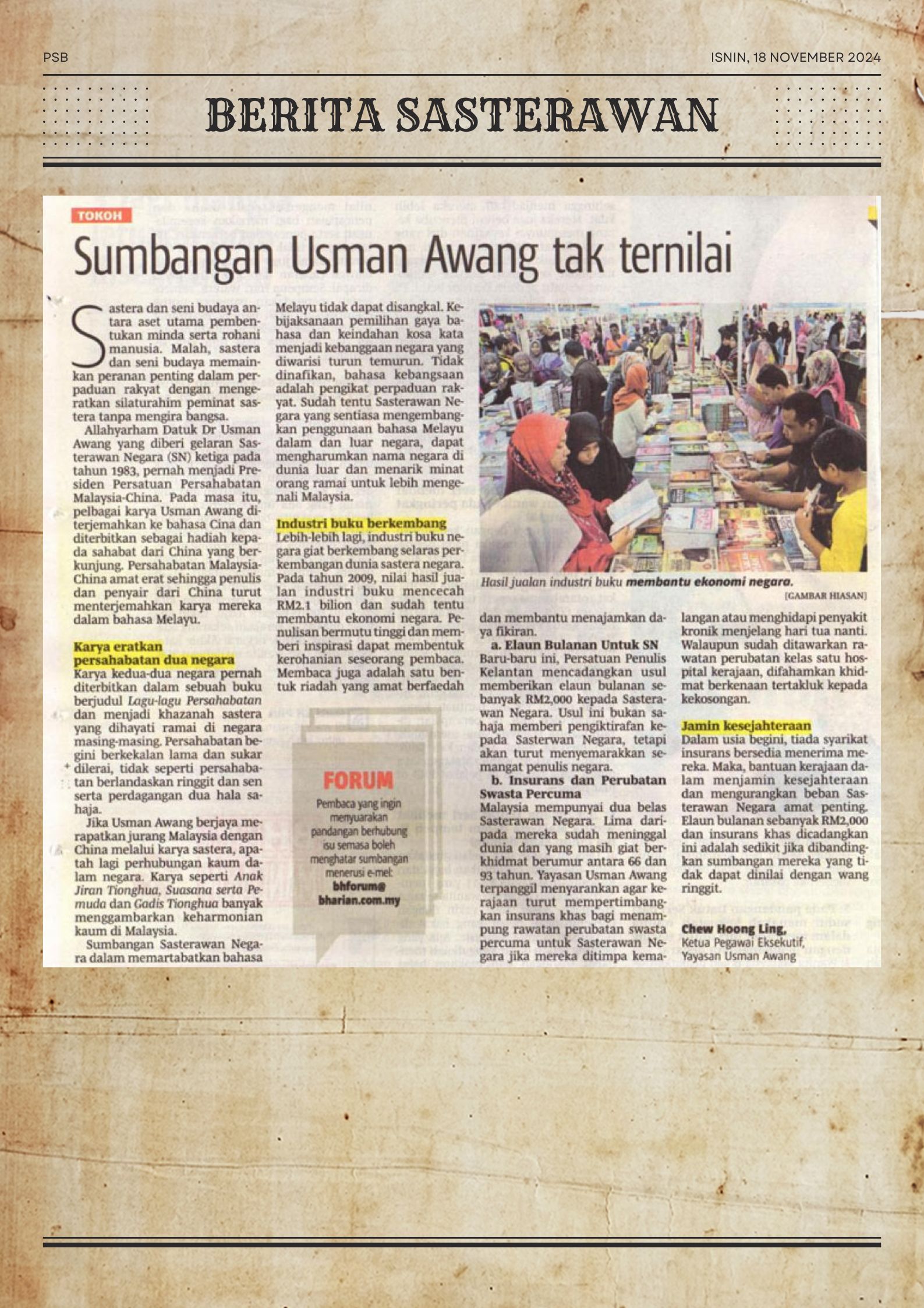 • On 30 May 2023, Prime Minister Datuk Seri Anwar Ibrahim expressed concern about the lack of student interest in literature, language, and culture, particularly works by local figures.